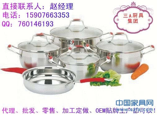 高檔不銹鋼廚具、湯鍋、炒鍋、煎鍋、奶鍋、蒸鍋、刀叉、碗筷碟子等眾多款式,批發(fā)、零售、代理還可以加工定做,OEM貼牌生產(chǎn)!廠家直銷?。?!櫥柜、炊具等產(chǎn)品配套的最佳選擇!消費(fèi)者最愛的禮品,贈品!
